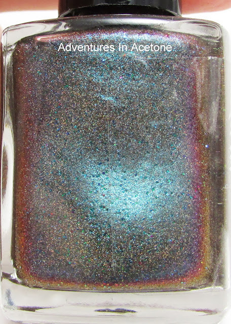 Lastly, we have Holo!! My Name Is... This name makes me laugh and it's described by Andrea as, "a multichrome holographic poish with a blueish/green, purple, copper shift." I noticed some color shifting glitters in there as well! This required three coats with top coat for the photos below. Another awesome color shifter! Photos below are in the light box and also under the direct light.