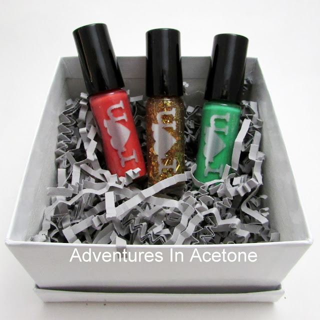 (PLEASE NOTE: My set was of mini polishes, but they are full sized polishes on Fab.com)