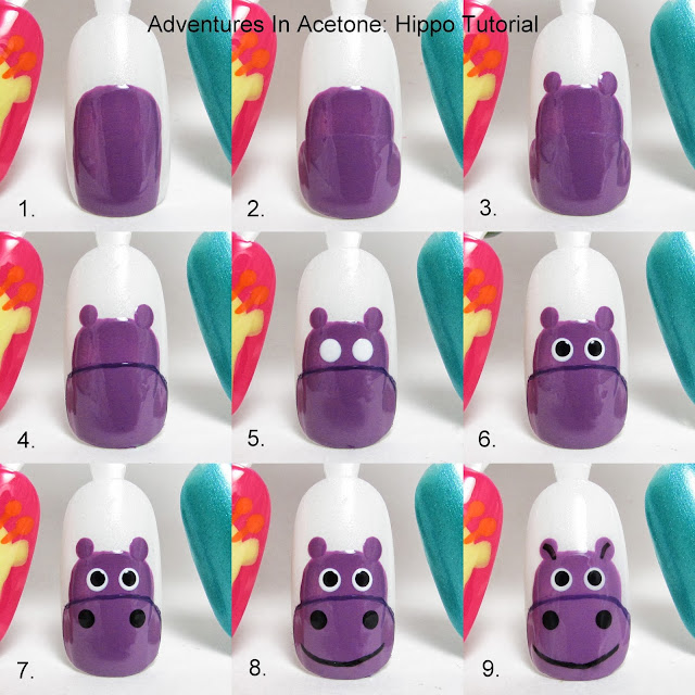 Hello, readers! It's time for another tutorial! This week's is on the hippo nail art I did for the Digit-al Dozen Animal Week a couple of months ago.