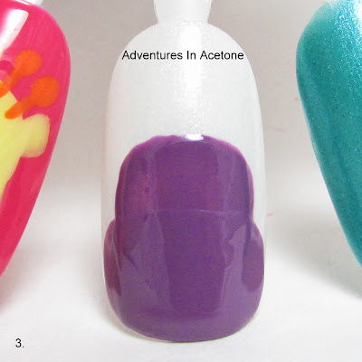 Step 5) Use a striper brush and China Glaze Grape Pop to create an outline around bottom half of the face.