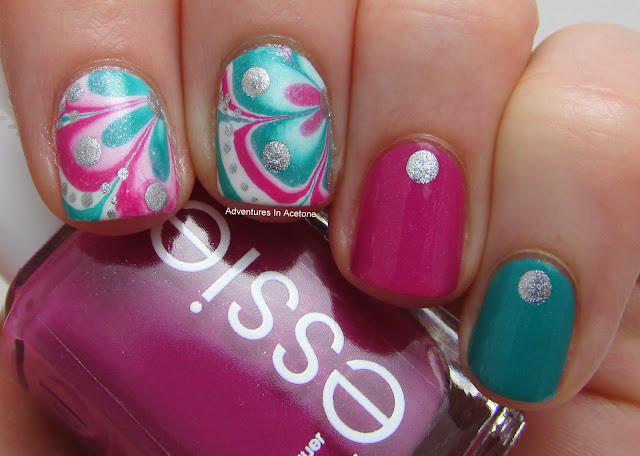 When I grabbed these 2 of the Essie Summer 2013 collection, I knew they would look fab in a mani together. I'm glad I've finally gotten around to using them! They water marbled beautifully!
