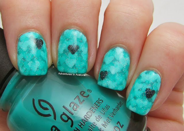 Step 5) Do another coat of China Glaze Keepin' It Teal over the hearts. Let dry.