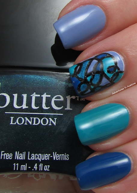 Hello readers! Are you enjoying Art week? It's day 3 and today's post is an abstract line design using some Butter London polishes! I found a Sally Hansen Nail Art Pen in my drawer and realized that it would work pretty well for this line design and it saved me a lot of time! I think it's basically like a permanent black marker but it worked! Then, I just filled in the shapes with the 4 different Butter London colors.