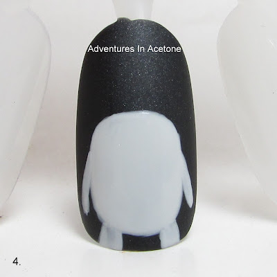 Step 6) Use your small dotting tool and Sally Hansen Black Out to make two small dots, spaced a bit wider than normal for the eyes.
