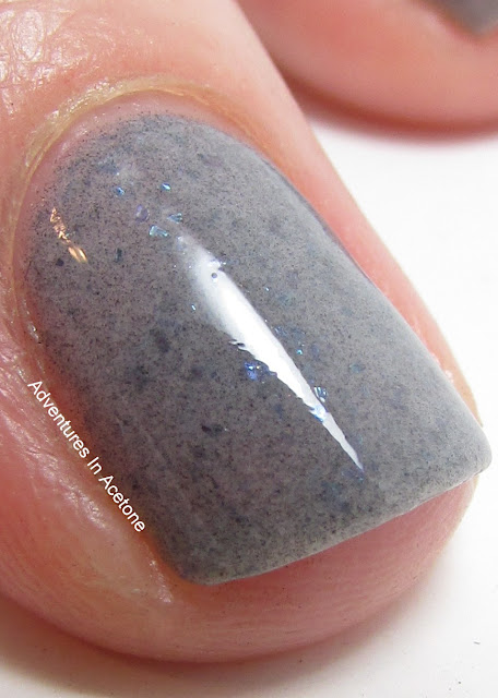I am on such a gray kick lately that this was right up my alley! A gorgeous gray tone with great coverage! I'm showing 2 coats below with top coat. I had no issues with application and the flakies are more noticeable in person. (So I guess you will just have to go and buy it right away to see for yourself hehe).