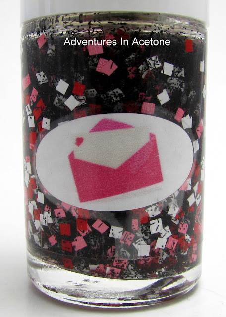 I'm closing out this week with a simple manicure with a gorgeous unique Valentine's Day polish: The Nail Junkie's Love Letter. It's, "a symbolic polish with red, white, and pink mini sheets of paper (square glitters) and lots of black ink (super teeny bar glitter and fine particle glitter) in a clear base." I loved this glitter and had to order it as soon as it was available on Etsy. It is currently in stock so go grab one!