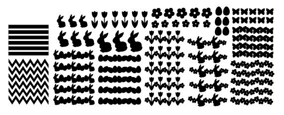 There you have it! There are only a few that I didn't get to use yet from the sheet (string of bunnies+eggs, medium and large bunnies, and single eggs) but I hope this gives you a good idea of looks you can create with it.