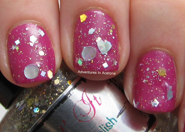 My third favorite is this gorgeous pink, Straw Fairy Blossom. A pink jelly base with gorgeous purple shimmer, pink flower glitters, and tons of other white and pink glitters. It applied nicely and the shimmer just glows!